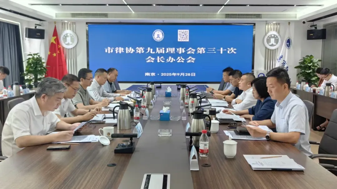 9月28日,南京市律协第九届理事会第三十次会长办公会在市律协会议室召开。市律协会长刘伟主持会议。市司法局党组成员、副局长、市律师行业党委书记王庆出席会议。