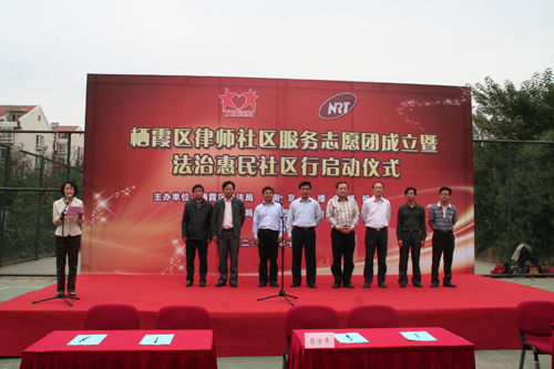 10月13日,栖霞区举办律师社区服务志愿团成立暨“法治惠民社区行”启动仪式。各街道专职副书记,区经济适用房社区书记和各律师事务所主任及全体志愿律师等共180余人参加成立仪式。栖霞区律师代表分别与四家社区共同签订服务协议书,栖霞区区委组织部领导为区律师社区服务志愿团授旗,市司法局副局长、市律协党委书记王星旅,区委常委、区委政法委书记孙中华出席活动并讲话 。
